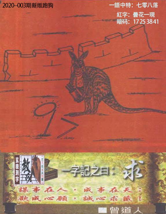 003期:新版跑狗一字記之曰【求】玄機測字:《教》