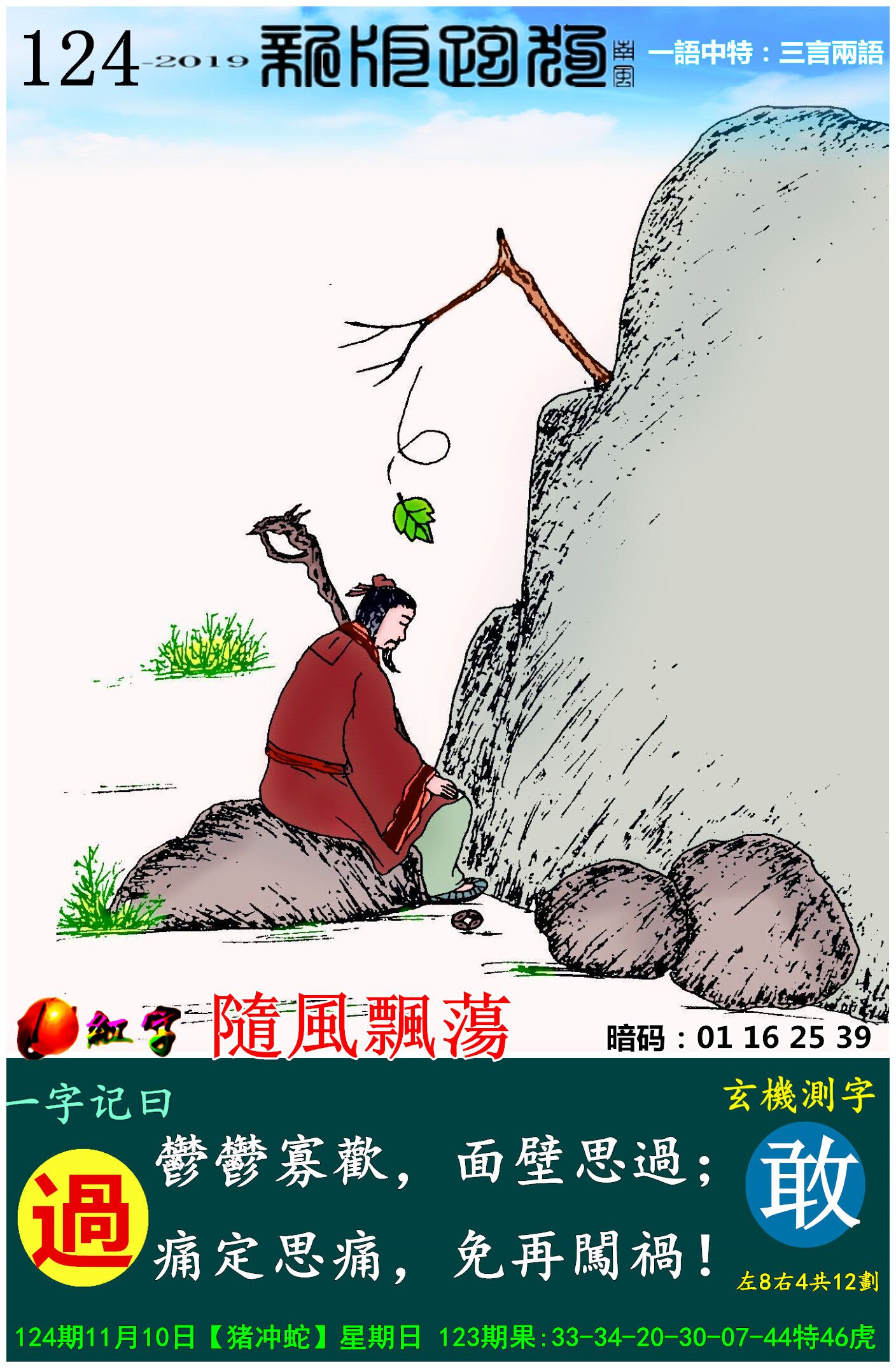 124期新版跑狗一字記之曰:【過】 鬱鬱寡歡,面壁思過; 痛定思痛,免再闖禍!