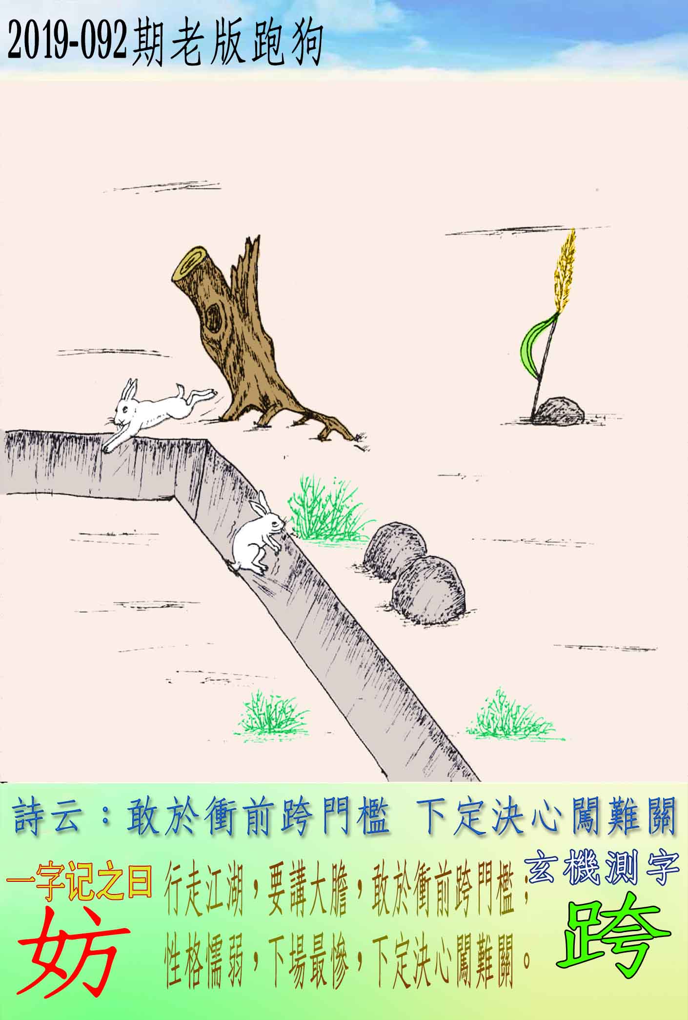092期老版跑狗一字記之曰:【妨】 詩雲:敢於衝前跨門檻,下定決心闖難關。