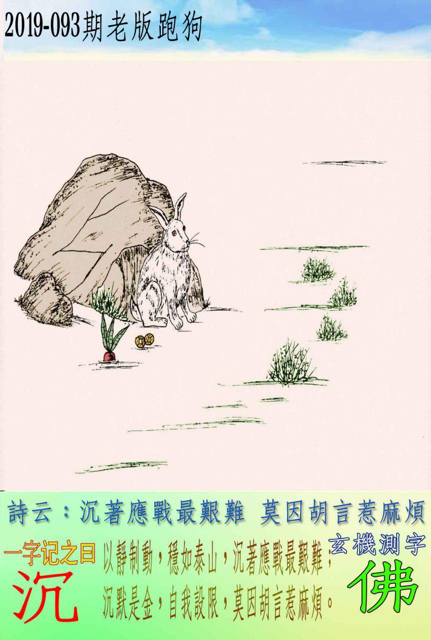 主题 : 093期老版跑狗一字記之曰:【沉】 詩雲:沉著應戰最艱難,莫因胡言惹麻煩。