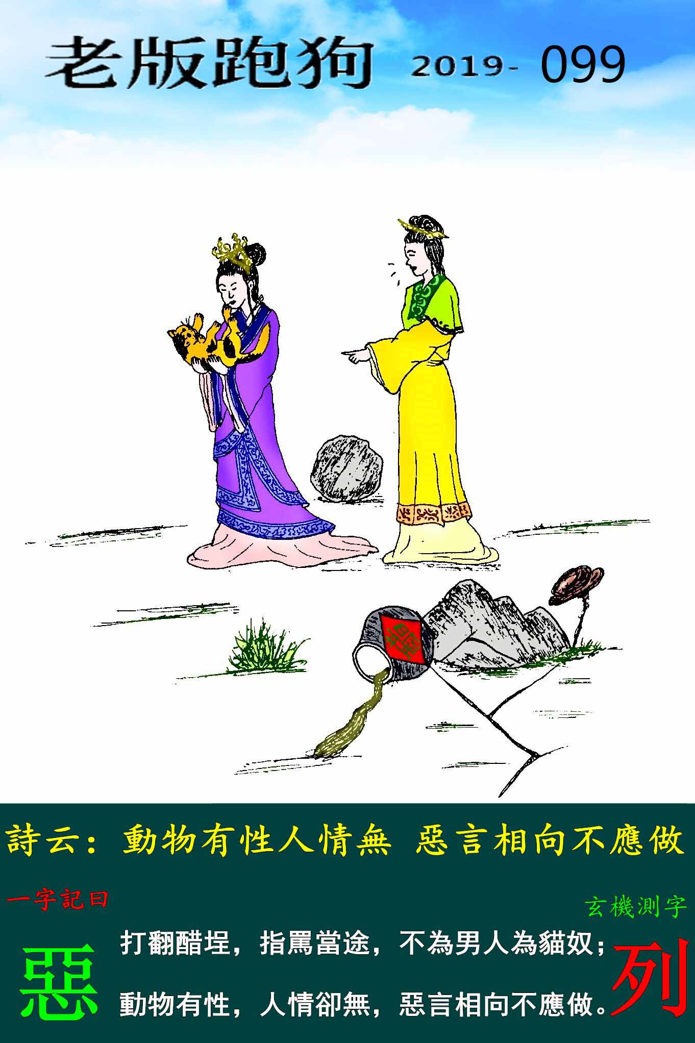 099期:老版跑狗一字記之曰【惡】玄機測字《列》