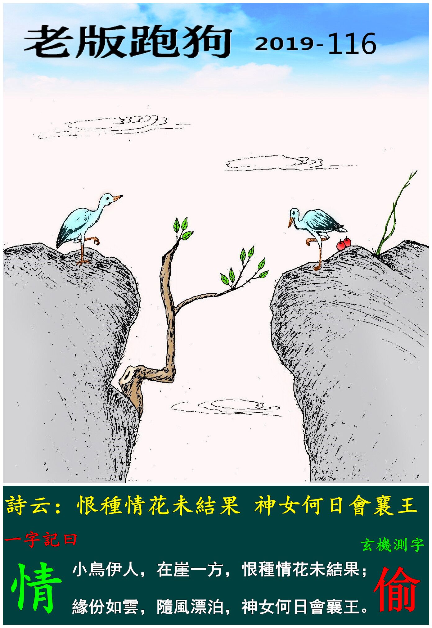 主题 : 116期老版跑狗一字記之曰:【情】 詩雲:恨種情花未結果,神女何日會襄王。