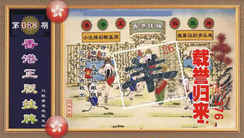 088期香港关门联:四七出头将再行,鸡牛马龙是特码。解 [将] [1975]