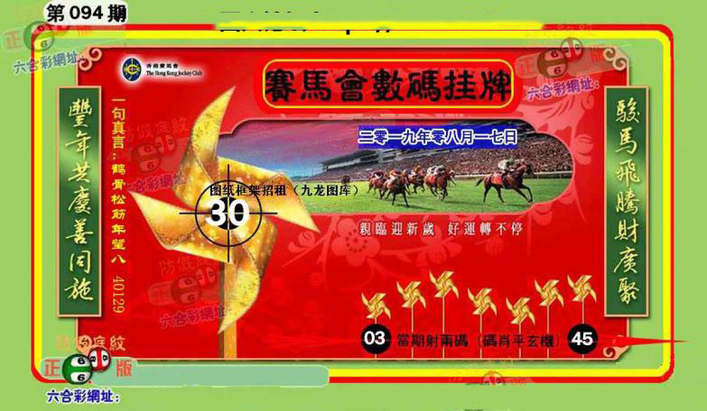 094期(香港版)六合对联诗:不离三后 上联:马后龙前三跟四 下联:七就合三看六尾 解:三。密码:3480